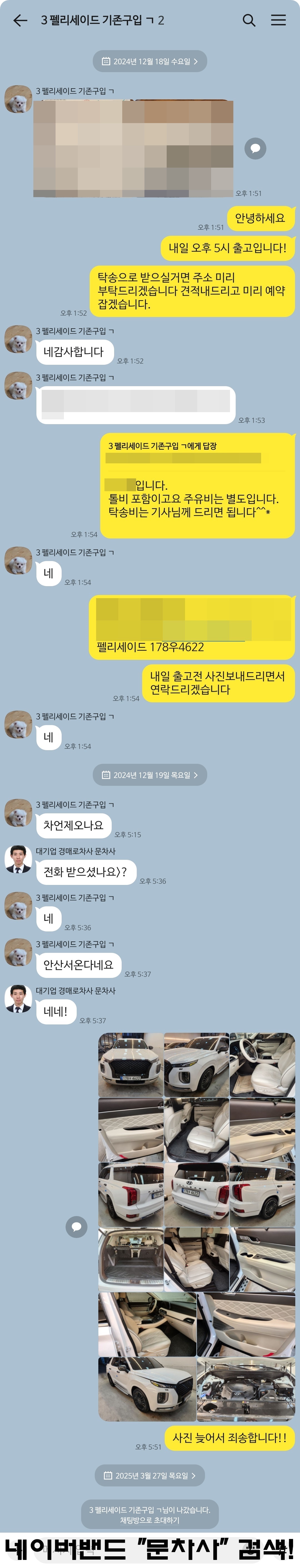 최근 고객님께서 원하신 차량은 2022년식 펠리세이드 3.8 가솔린 캘리그래피(주행거리 3만km) 모델이었습니다.